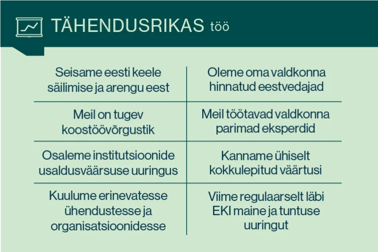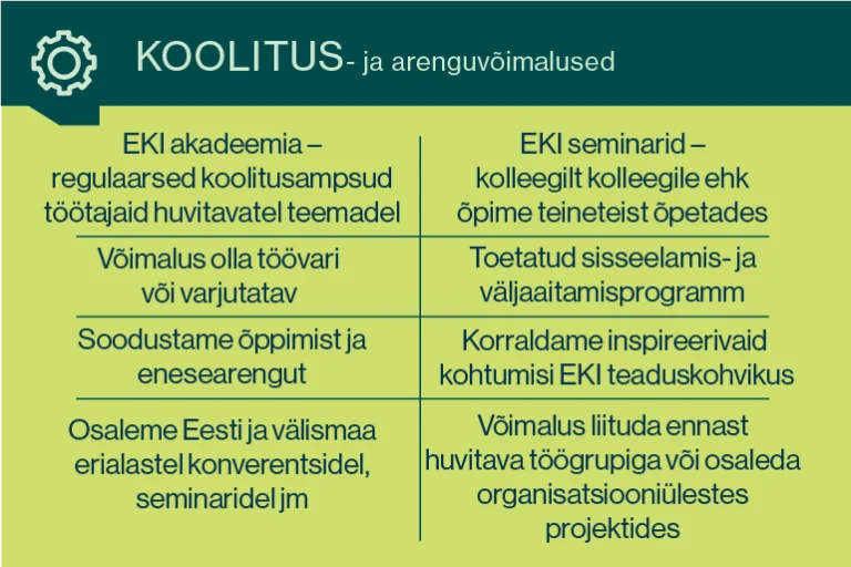 Kui meil vabu töökohti ei ole, aga sa näed oma tulevikku just meie juures, võid alati kirjutada personal@eki.ee.
