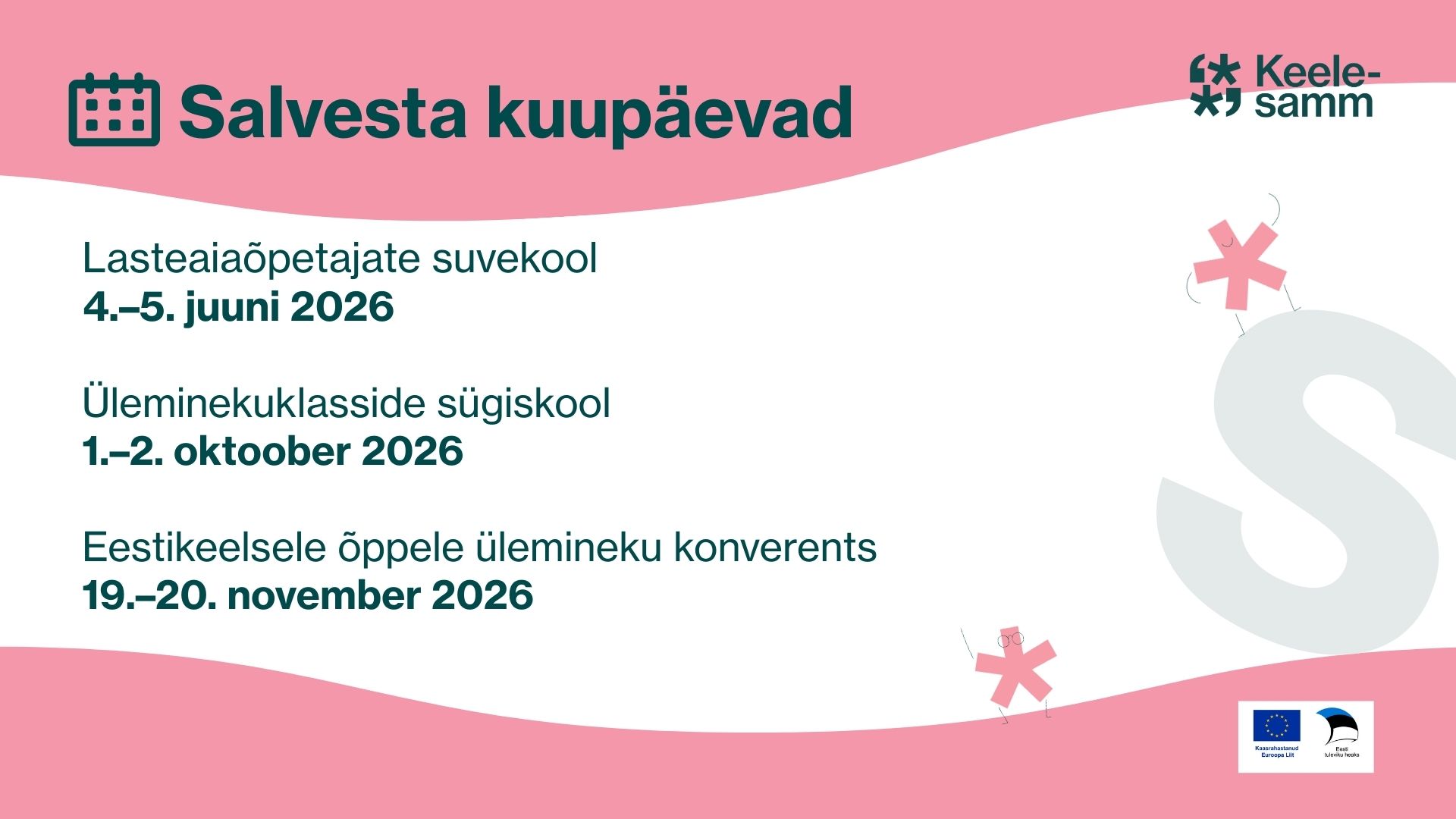 Info ja registreerimineSihtgrupp: üldhariduse aineõpetajad ja kutsekeskhariduse üldainete õpetajad (olenemata õppeasutuse õppekeelest), kellel on eesti keelest erineva emakeelega õpilasi.
