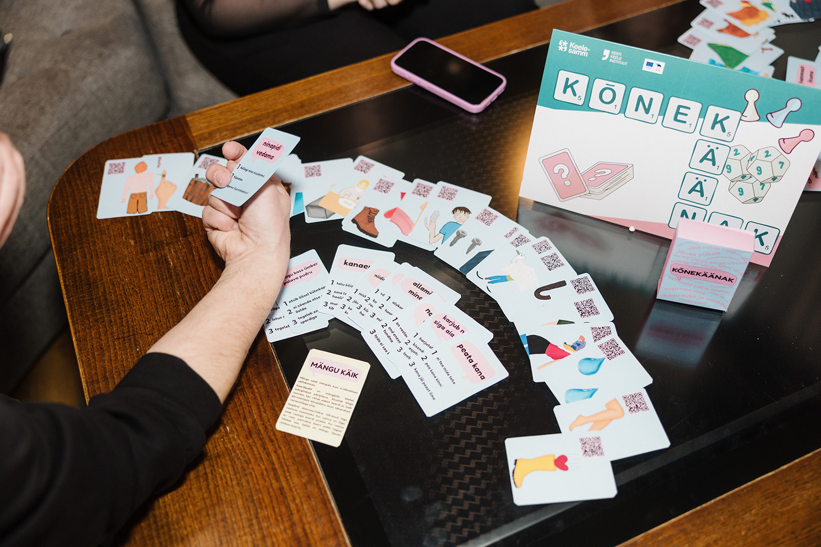 Mängus on kasutusel ka QR-koodid, mis suunavad digikeskkonda (nt Quizlet), kus saab sõnavara ja väljendeid täiendavalt harjutada.